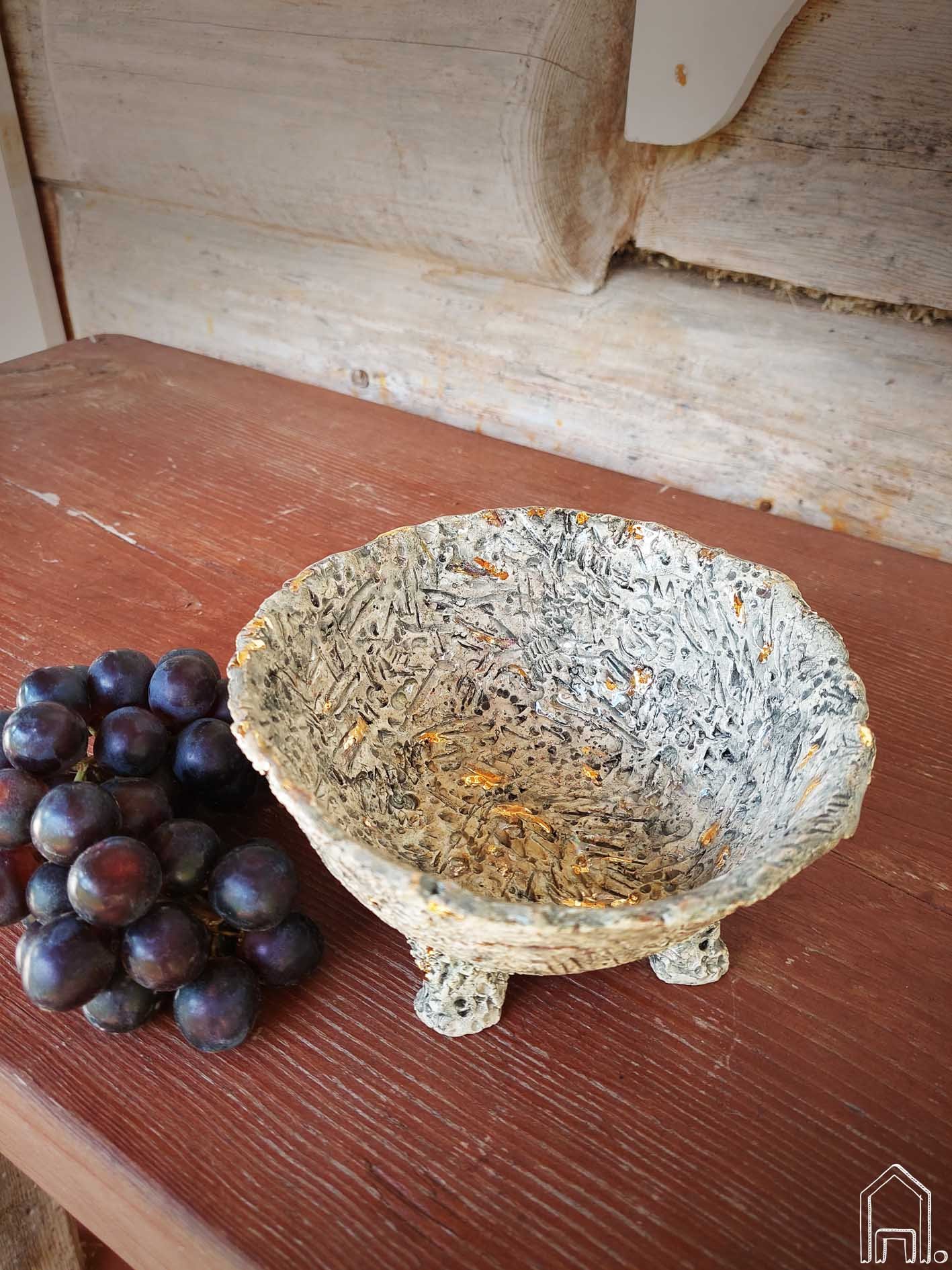 Unikalus, kruopščiai rankomis nulipdytas, grublėto paviršiaus meteorų dubenėlis, sukurtas patiekti ant stalo nedidelius užkandžius. Pikšvų ir rusvų tonų dubenėlio paviršius vietomis spindi vaivorykštiniu žvilgesiu. Subtilios prabangos indui suteikia auksu žaižaruojančios dubenėlio gyslelės ir akmens tekstūrą primenantys įtrūkimai.