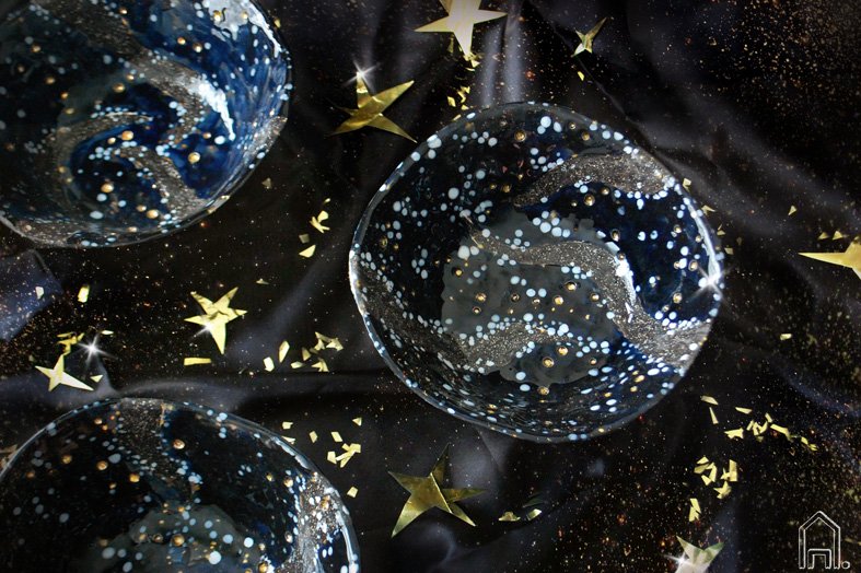 Kiekvienas dubuo, didelis ar mažas - tai individualus naktinio dangaus gabalėlis. Jame gali atsirasti žėručio glazūros paukčių takas, dideli ir maži baltų taškelių žvaigždynai.