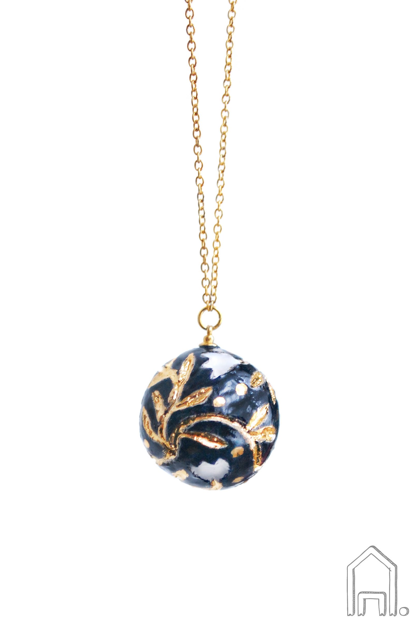 Dekoratyvus keramikos pakabukas, sukurtas derinant skirtingų rūšių glazūras ir auksą.