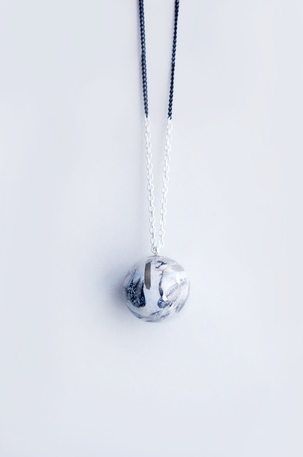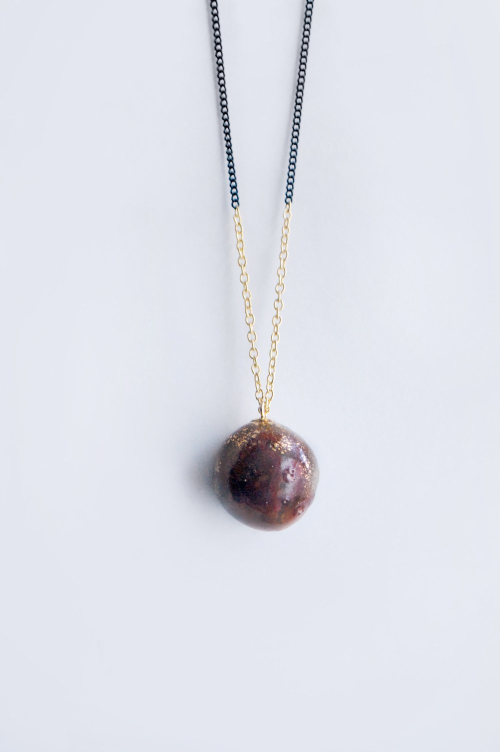 Minimalistiškas keramikos pakabukas, dekoruotas derinant skirtingų rūšių glazūras ir platiną.