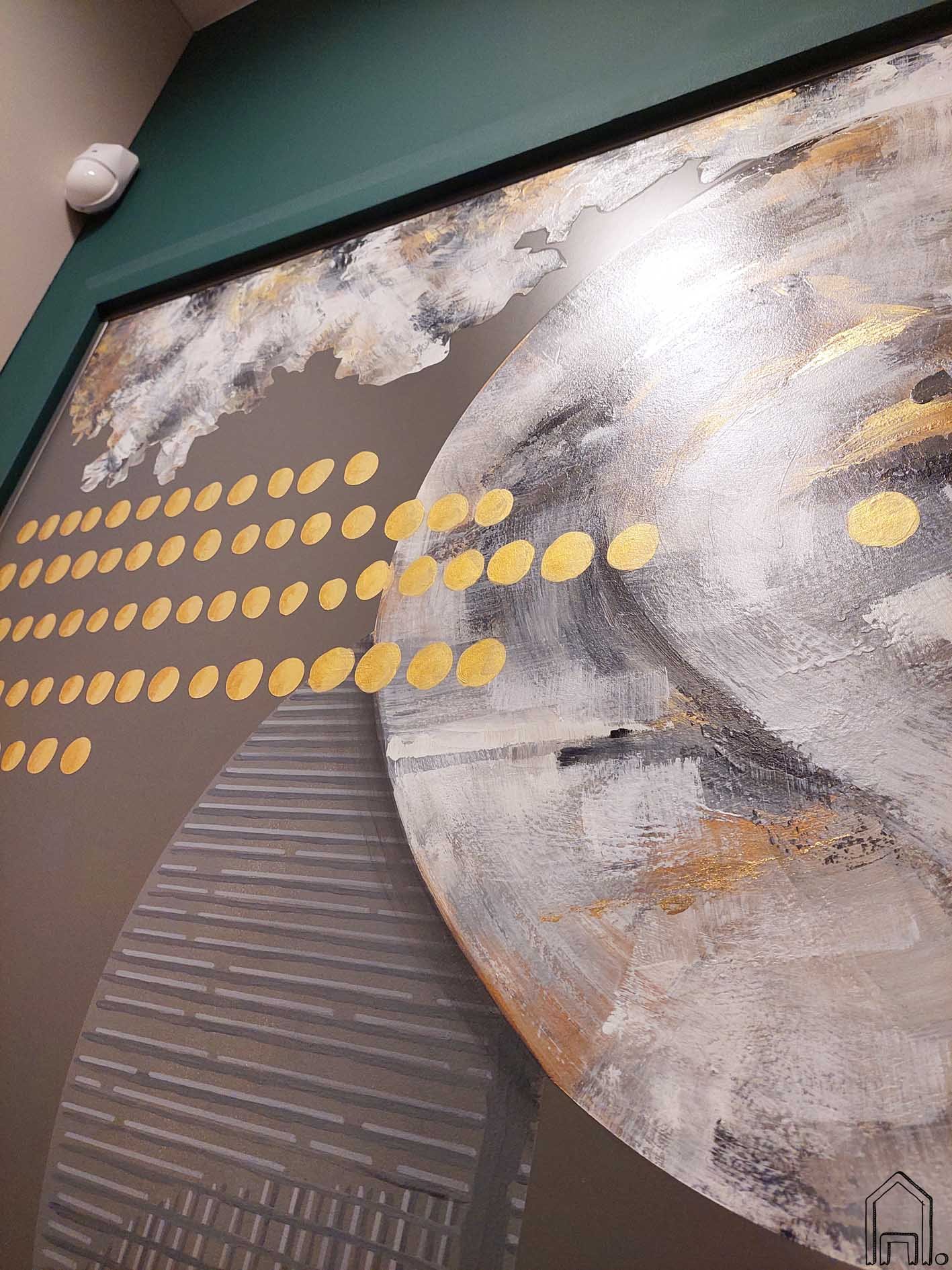 Šiuolaikoje, sodriai žalia spalva nudažytoje prieškambario erdvėje ant pilkų lauko durų nutapytas piešinys, kurio akcentas - per durų centrą einanti grafiška, iš apskritimų ir pusapskritimių sudaryta ašis. Aplink ją ratu sukasi faktūriniai apskritimai, klientams primenantys planetas. Žvelgiant į piešinį iš įvairių kampų šalia durų esančiame veidrodyje matomas piešinio atspindys, taip ant greta esančios sienos sukuriamas optiškas piešinio pratęsimas.