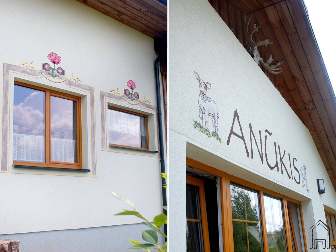 Visuomet buvau įsitikinusi, kad kelionės praplečia mūsų akiratį. Tai ką pamatome, nuotykiai kuriuos patiriame, ką paragaujame ar išgirstame, viskas nugula kažkur į pasamonę, o vėliau iš to kyla netikėčiausios idėjos. Štai "Anūkio" šeimininkai iš kelionės po Austrijos miestelius, parsivežė mintį apie piešiniais "įrėmintus" namų langus. Tokie dekoratyvūs rėmeliai, puošti ornamentais, faktūromis, augalais, paukščiais ir net gyvūnais labai populiarūs ne tik šios šalies didmiesčiuose, bet ir mažesniuose miesteliuose ar kalnų kaimeliuose. Juk žmonės, mylintys savo namus, nori juos puošti ir puoselėti nesvarbu, kur begyventų..