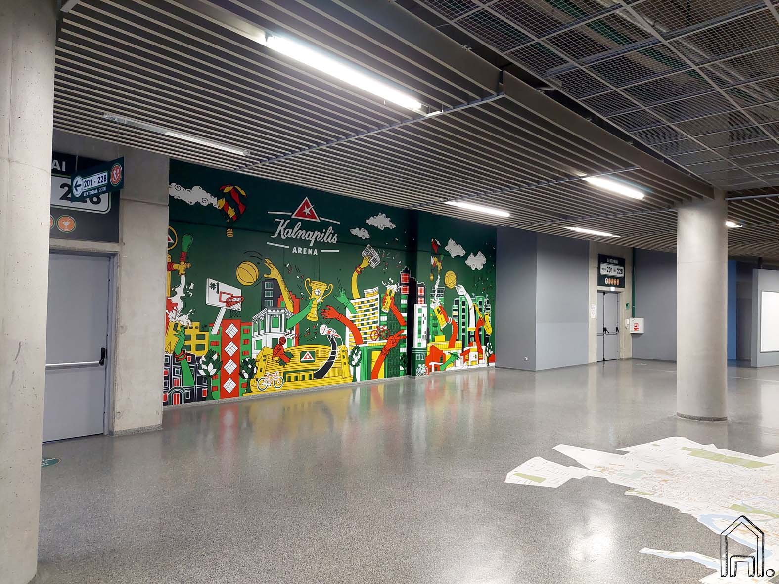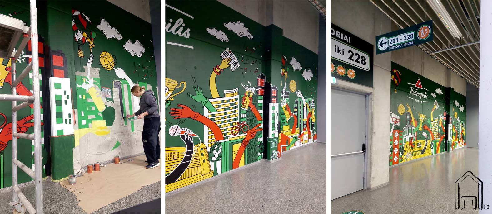 Spalvingas piešinys sukurtas bendrovei UAB "Kalnapilis". Vasario 5 dieną Panevėžio miesto pramogų ir sporto arena iki šiol žinota "Cido" pavadinimu fasadą pasipuošė nauju logotipu ir tapo "Kalnapilio" arena. Norint pažymėti šį svarbų faktą ir atnaujinti arenos erdvę gavau pasiūlymą sukurti ryškiaspalvį piešinį arenai.