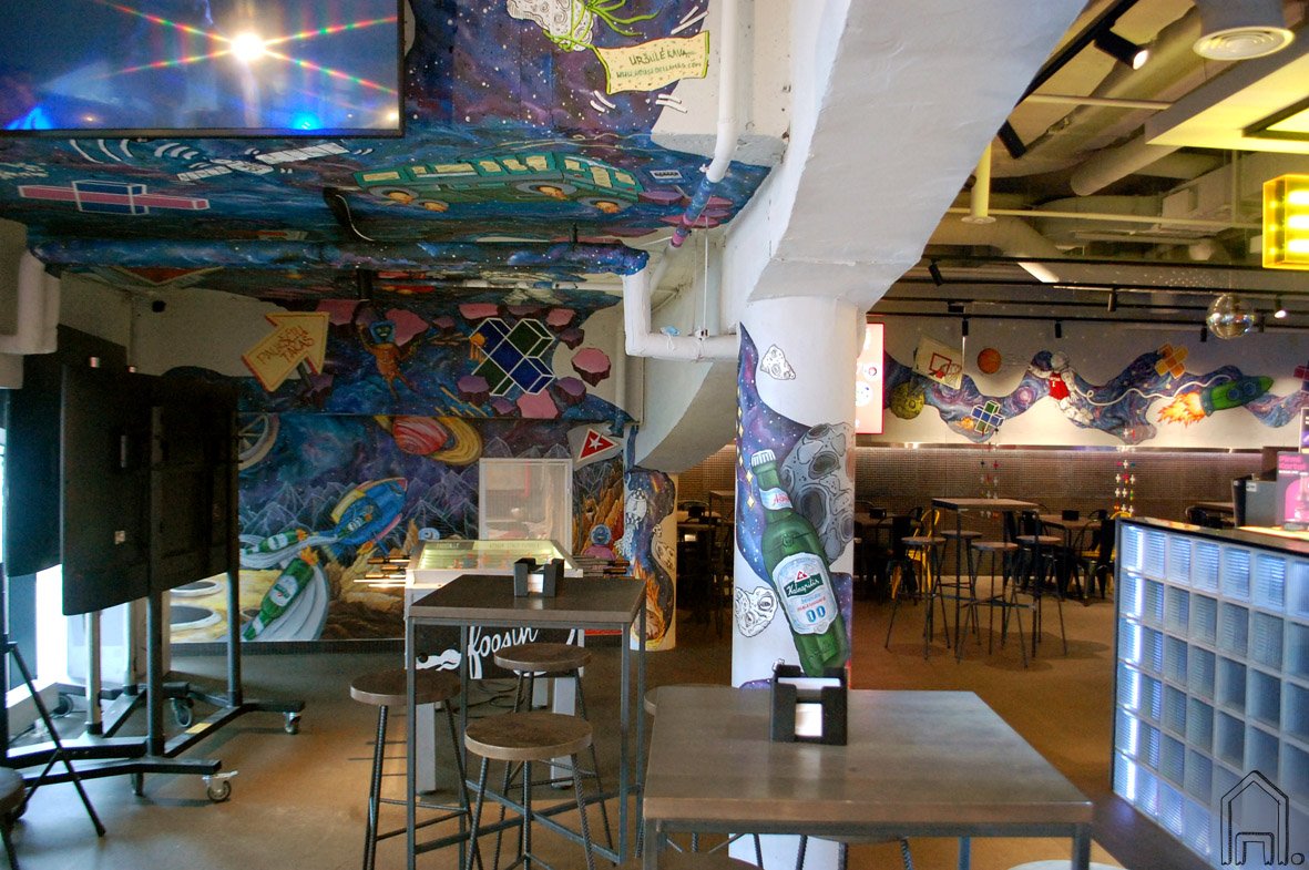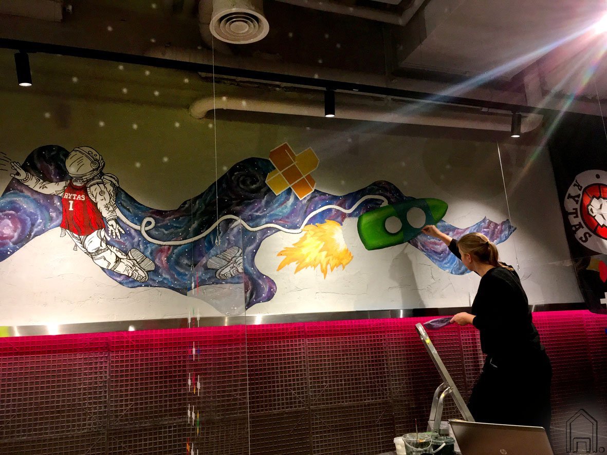 Spalvingu kosminiu piešiniu pasipuošė pirmoji krepšinio komandos BC „Rytas“ sirgalių ambasada, įsikūrusi gastrobare "Plus plus plus". Piešinys sirgalių ambasados erdvėje - kosmoso tematikos, puošiančios to paties gastrobaro lubas idėjos tęsinys.