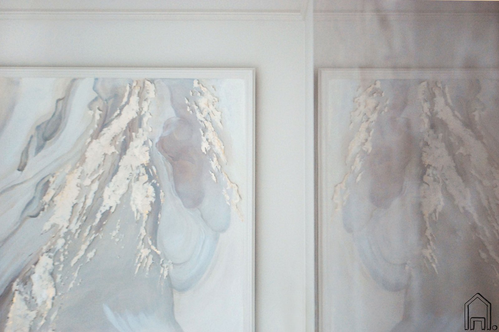 Piešinys nutapytas ant nuo sienos atkeltos plokštumos. Kadangi ši abstrakcija - vienas pagrindinių svetainės erdvės puošybos elementų, interjero dizainerė jam suprojektavo papildomą LED apšvietimą.