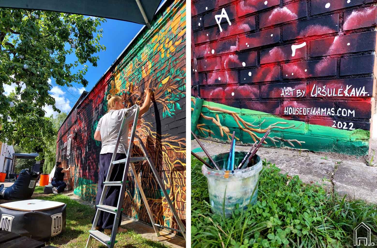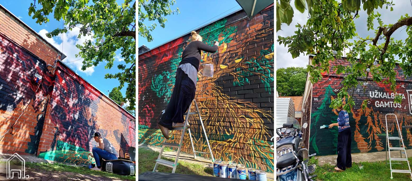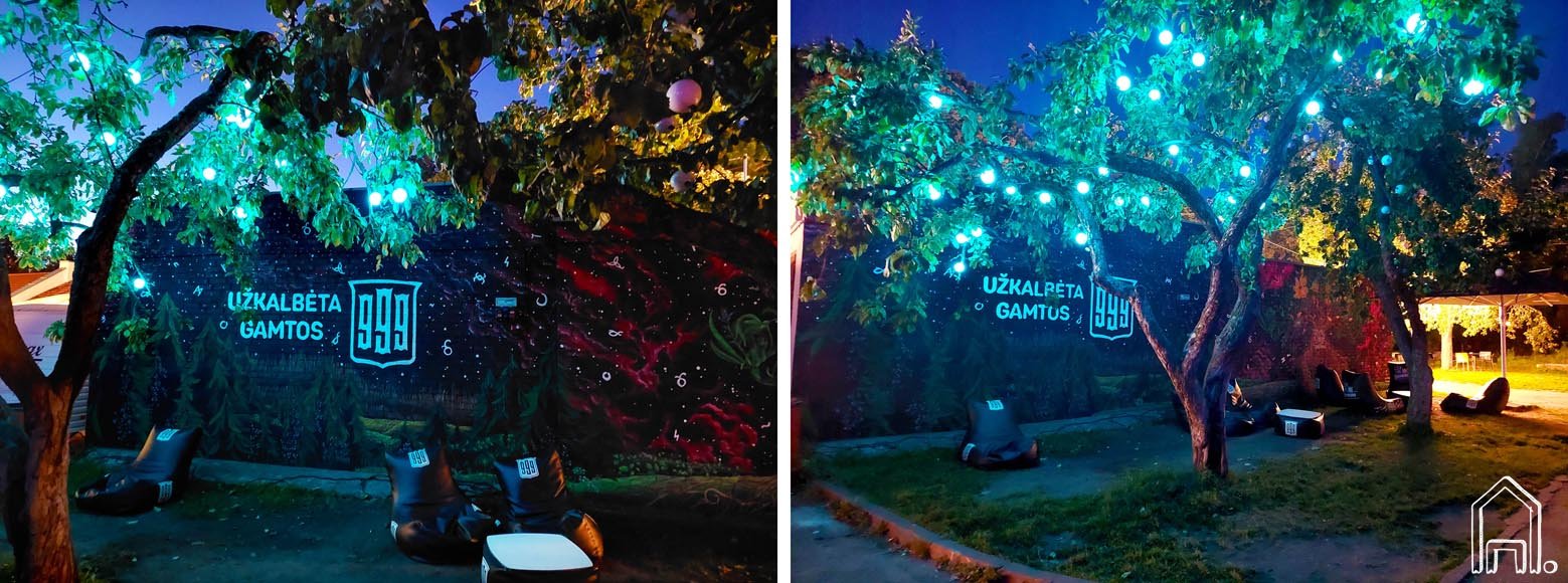 Pačioje Vilniaus senamiesčio širdyje, tarp Bernardinų sodo ir to paties pavadinimo bažnyčios lankytojams duris atvėrusioje vasaros terasoje sieną papuošė spalvingas piešinys. Piešinys sukurtas "Trejų devynerių" prekiniam ženklui "Bernardinų kieme" įrengusiam kokteilių barą.
