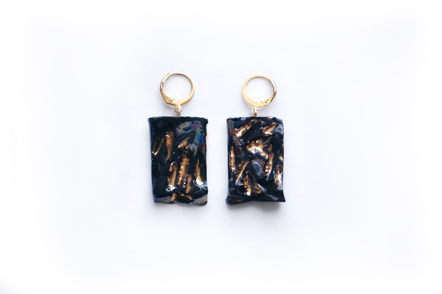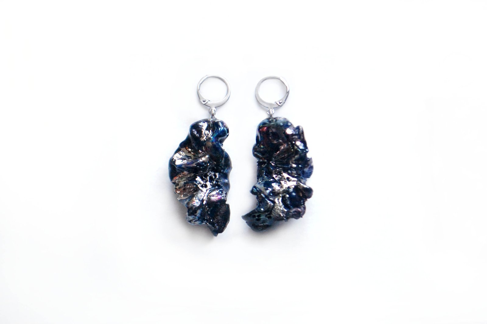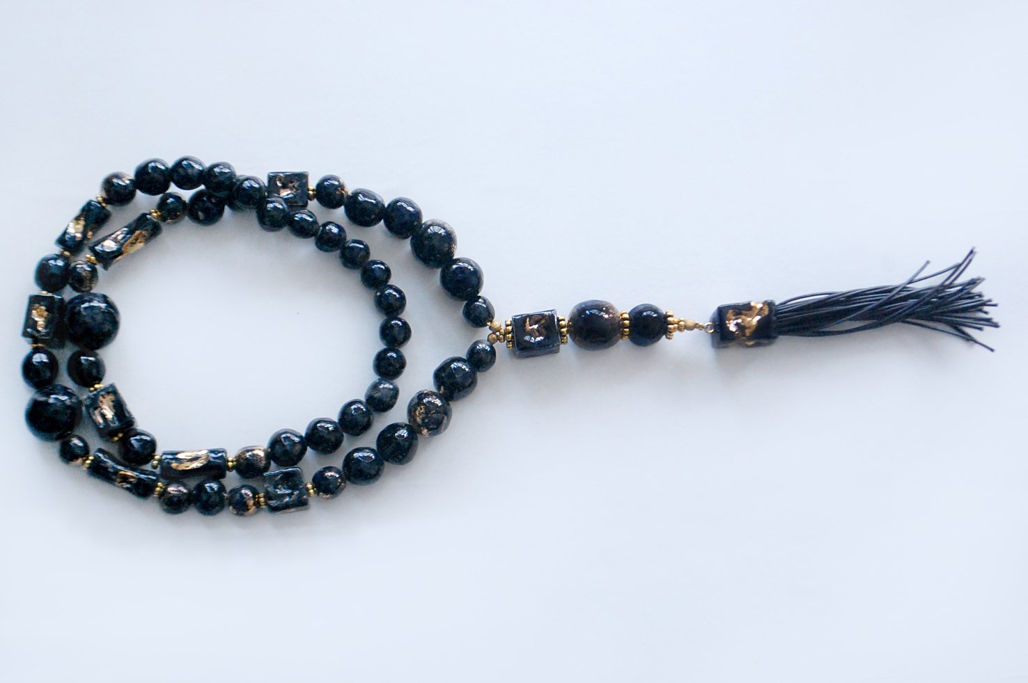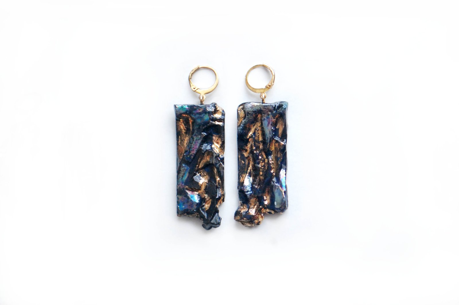 Juodai mėlynas , kaip vidurnakčio dangus, vėrinys su paauksavimais. Vėrinyje derinami triju skirtingų formų karoliai: apvalūs, pailgi, su ištrupėjimais ir įplišimais, primenantys uolienas ir stačiakampiai su ištrupėjimais ir įplišimais, primenantys uolienas. Kiekvienas karoliukas kruopščiai nulipdytas ir išskaptuotas rankomis, sukuriant vienetines faktūras ir papuošalui suteikiant išskirtinumo.