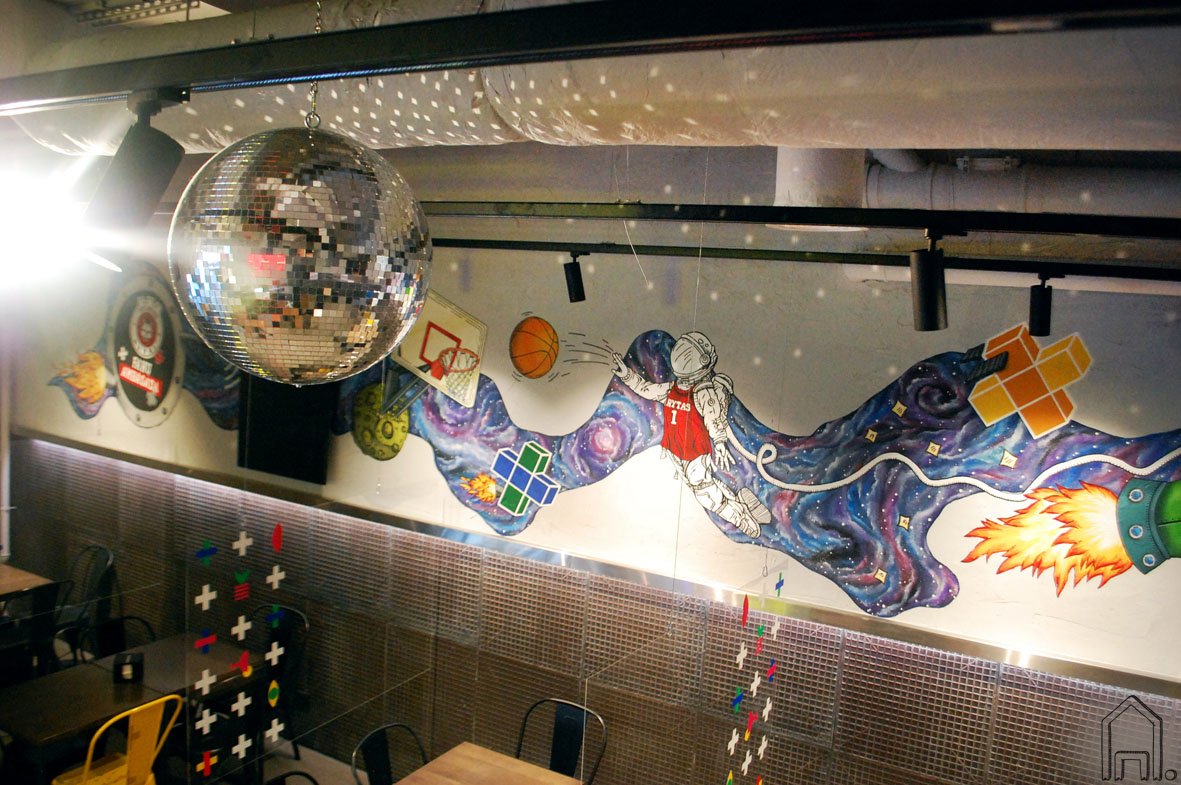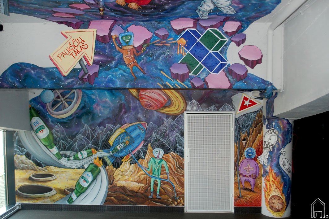Spalvingu kosminiu piešiniu pasipuošė pirmoji krepšinio komandos BC „Rytas“ sirgalių ambasada, įsikūrusi gastrobare "Plus plus plus". Piešinys sirgalių ambasados erdvėje - kosmoso tematikos, puošiančios to paties gastrobaro lubas idėjos tęsinys.