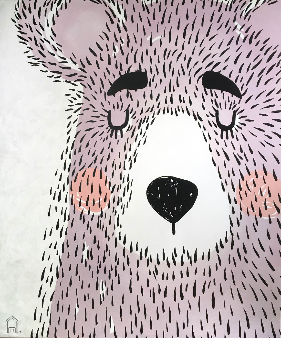 Nuotaikingas snaudžiančios ir greičiausiai apie medų sapnuojančios meškos portretas nutapytas vaikų kambario interjerui.