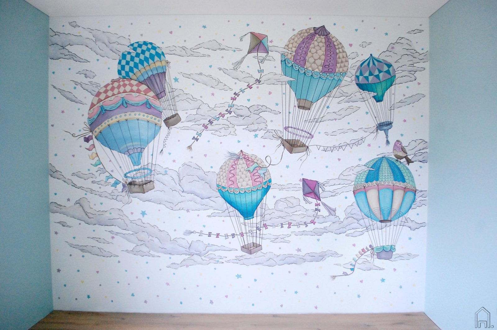 Mažos mergaitės taip mėgstami balionai, arba, kaip ji pati vadina, "monai", nutūpė ant jos kambario sienos. Piešiniui parinktos "skanios", saldumynus primenančios, šiek tiek prigesintos spalvos.
